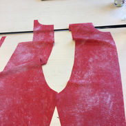 Hiervoor hebben wij eigen materialen ontwikkeld, onder andere latex experimenten die refereren aan huid en een digitaal dessin geprint op stof.